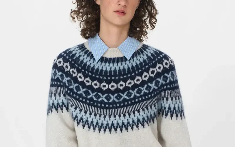 Nue Notes – Edmund Crewneck – Icy Egret Jacquard